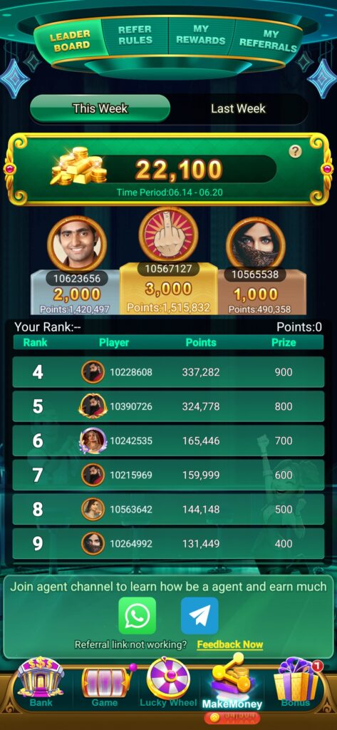 Aur Game ko Share karke pratidin₹2000-4000 tak apne Dosto ko invite karke kama sakte hai.is Application me Deposit And Withral ki koi samasya nahi hai.is liye agar aapko Ghar Baithe Aapko kuchh paisa kamana chahate hai to Is Game Download karke khele. Aur Apne Dosto ke pass jarur Share kare.